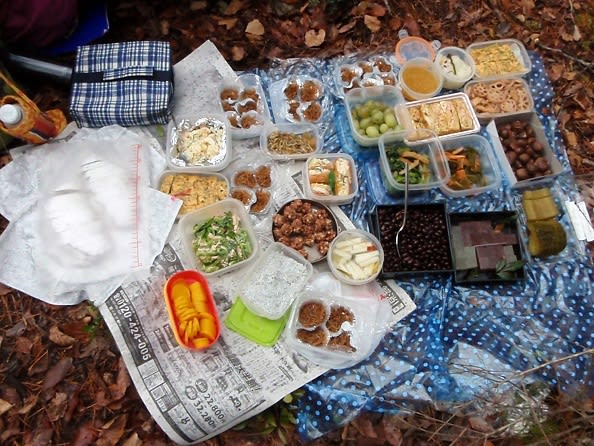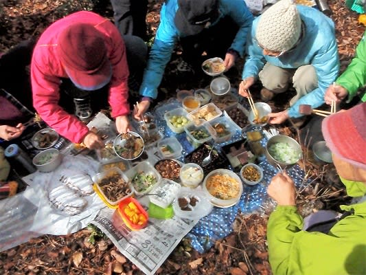 ■ お腹一杯 ■ 登山と言っても山の会の初登りの七草山行は食材・鍋など持参なのでお手軽です。食べるのが主なのです。