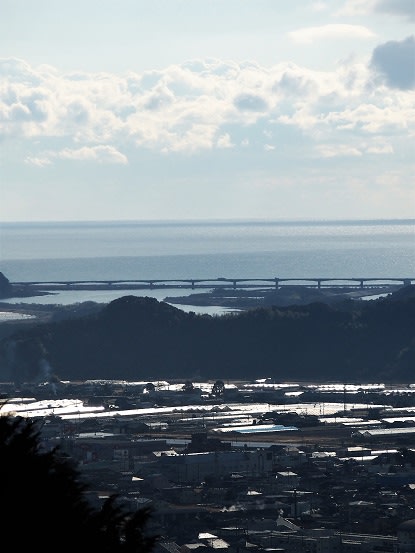 登るにつれ展望が広がり仁淀川河口大橋まで見えてきます。