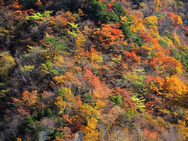 谷が深いので対面の山の彩りも綺麗に見える。
