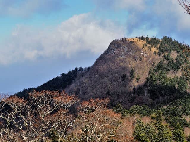 下山しはじめ10分もして振り返ると、なかなかの急登の先に頂上が見える。登りには息があがり撮影する気持ちが起きなかった場所です。