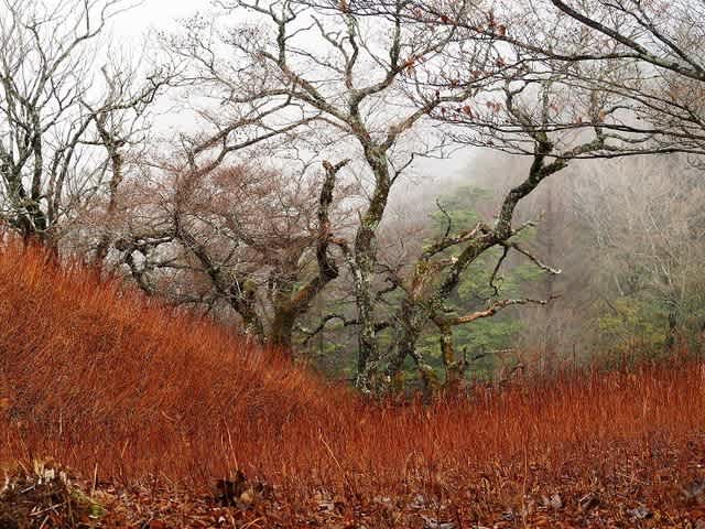 落合峠に近づき振り返ると笹原が広がる景色が見えて良い所だったな~としみじみ思いました。