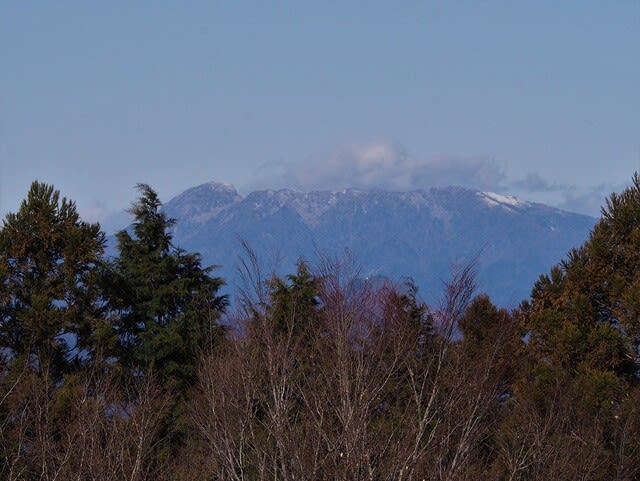 昨年ガスの中霧氷を見ながら寒さに震え歩いた尾根・頂上がばっちり見えています。晴れの時に霧氷見たかった!