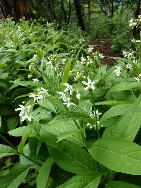 此花は鹿が食べません。登山道脇に一面広がっています。まだ満開にはしばらくかかりそうです…2週間して来て見たいと思ったのですが