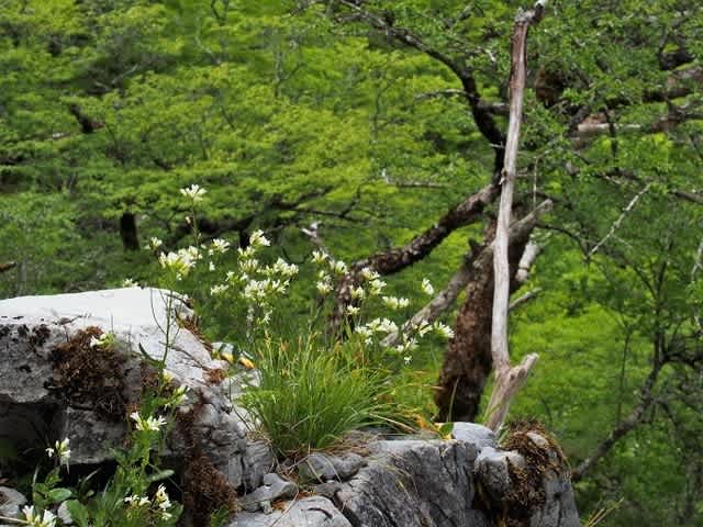 石立山は登山道の足下には花がまずありません。木々に咲く花とかネットで保護された中・鹿の食べない植物・食べられない場所のものだけです。