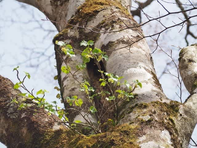 2日に登った山は尾根を歩くコース。すぐ際にブナが見えます。ブナにはヤシャビシャクが多く着生しているので丁寧にみていきます。かなりの着生していますが、遠すぎて撮影に適していないのばかり。近くに見つけて何ヶ所かで写すことができました。