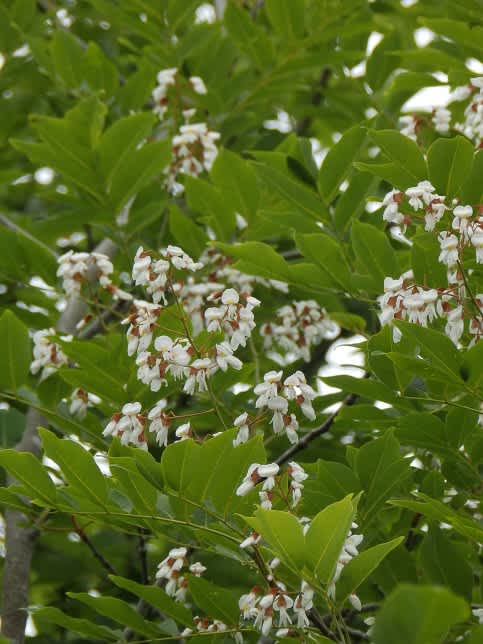 咲いた時に遠方からみたら雪の様だからユキノキ・・から転じ「ユクノキ」となったいわれています。昨年遠方の対岸で真白く見えたのも多分この木だったと思います。