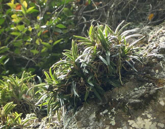岩壁で見られたのはセッコクの花だけではありませんでした。花が咲いていないので遠目には全く気が付きませんでしたが撮影していて判明したのがフウランの大株。