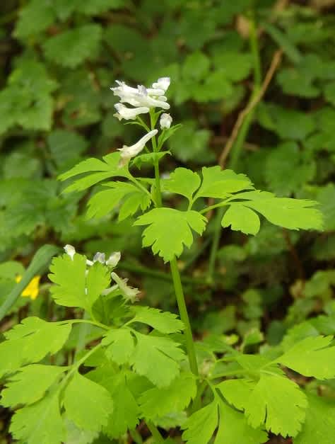 ムラサキケマンは家の周りなどでみかけます。それの色じろさんです。真っ白になったのがユキヤブケマン。