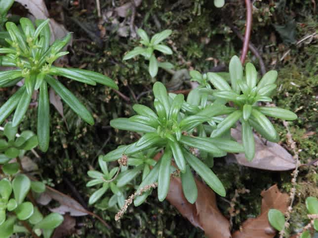 残念ながら咲いていません。左右に小さく見えているのはマルバマンネングサです。