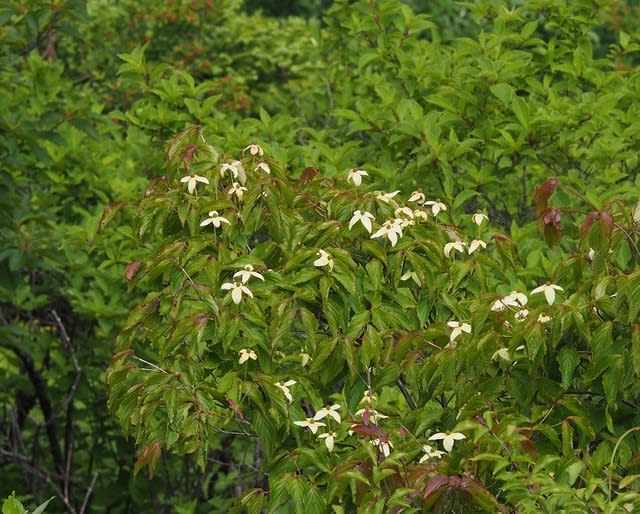 登山道に白い花弁が多く散っていたのはこの花でした。