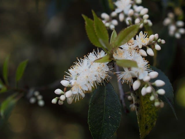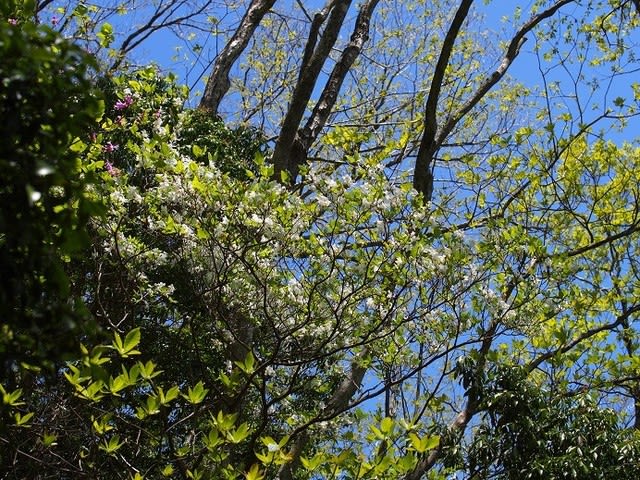高知ではあまりみられないこの木の花も愛媛で見られる。風が吹き、揺れに揺れ、それこそザイフリボクでした。