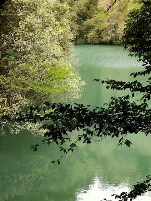川の色は深く緑、新緑が気持ち良い中をひたすら歩く。