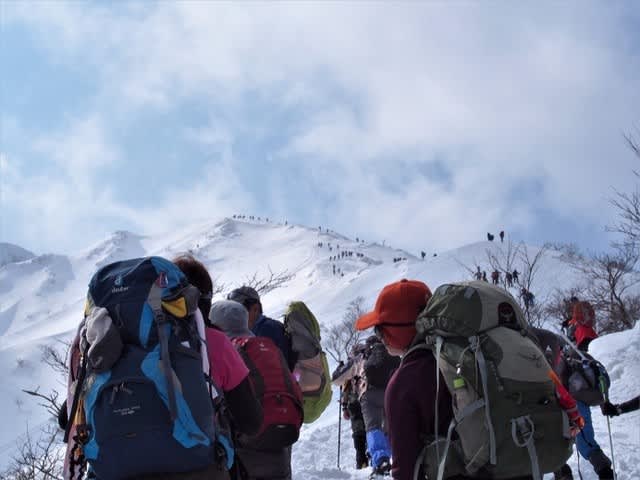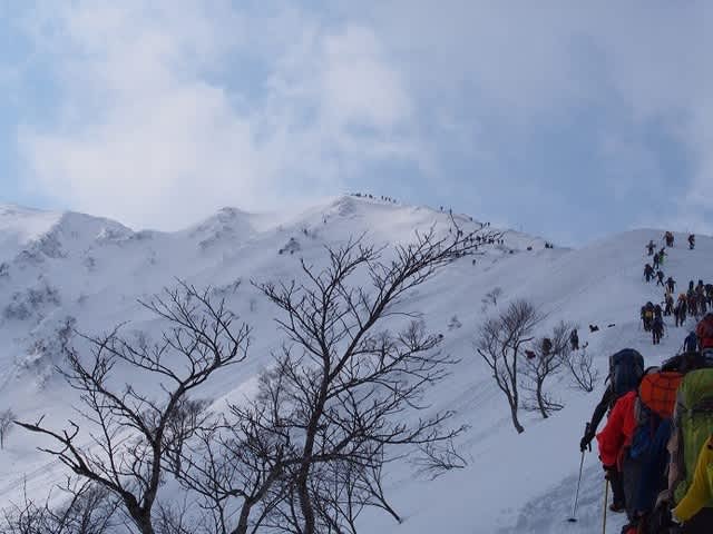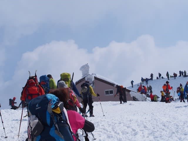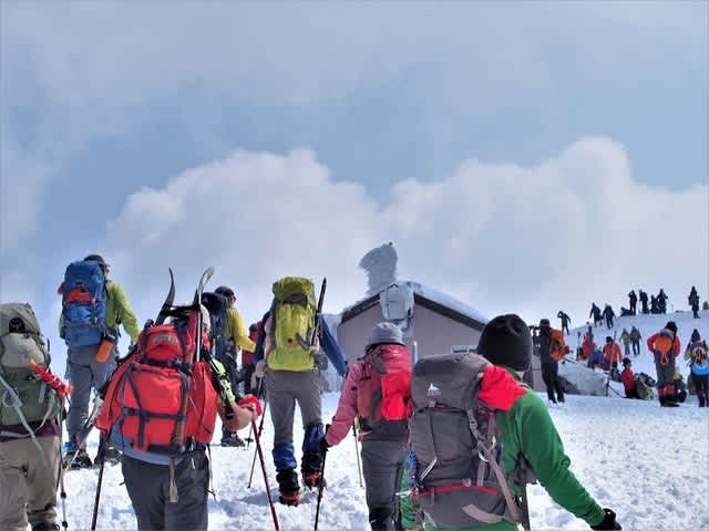 頂上小屋に向けてメンバー揃って歩く。ものすごく人が多い。