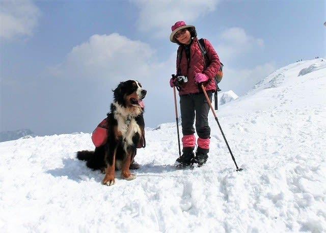 きちんとポーズを取ってくれる大きなワンちゃん。途中暑くなってお腹を雪にぴったりつけて冷やしていた姿も可愛かったです。(Eさん撮影)
