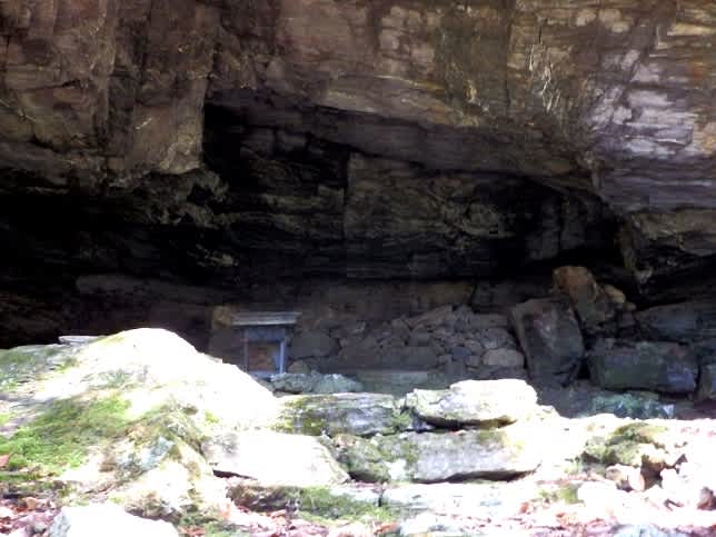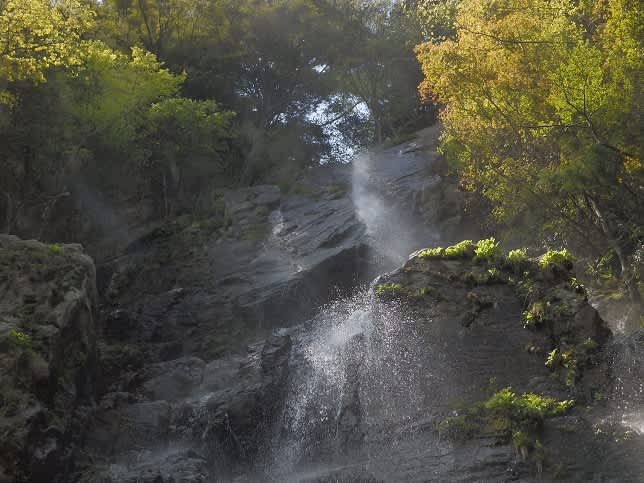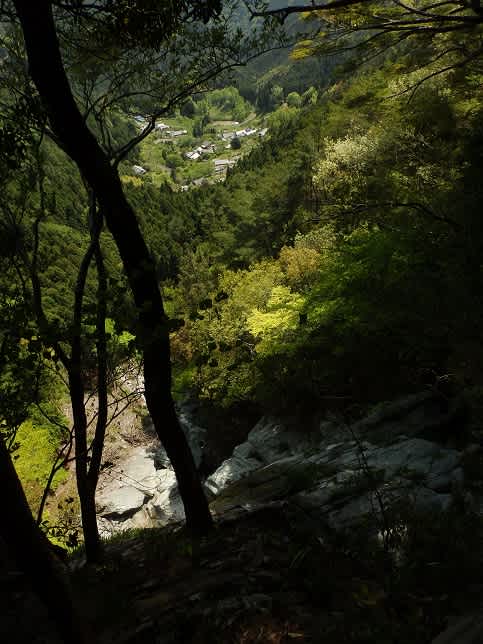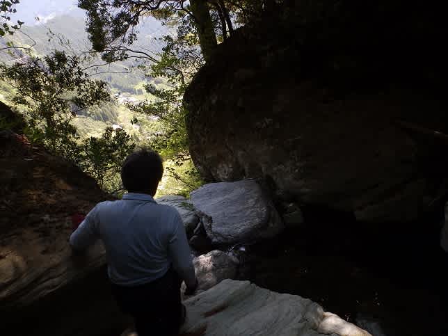 途中から滝の落ち口へはいり覗き込む。岩柄の車を停めた場所がみえる。