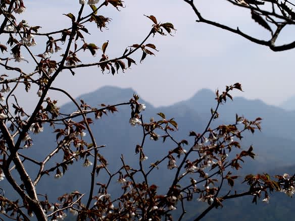岩黒山でイシヅチザクラが見られるとは思っていなくてラッキー。瓶ケ森背景です