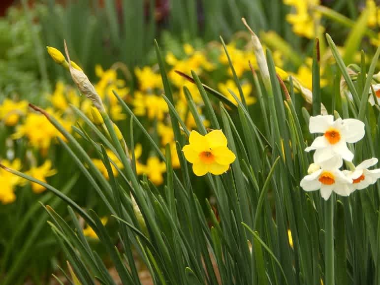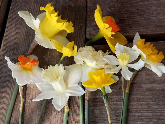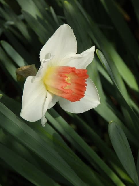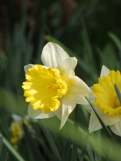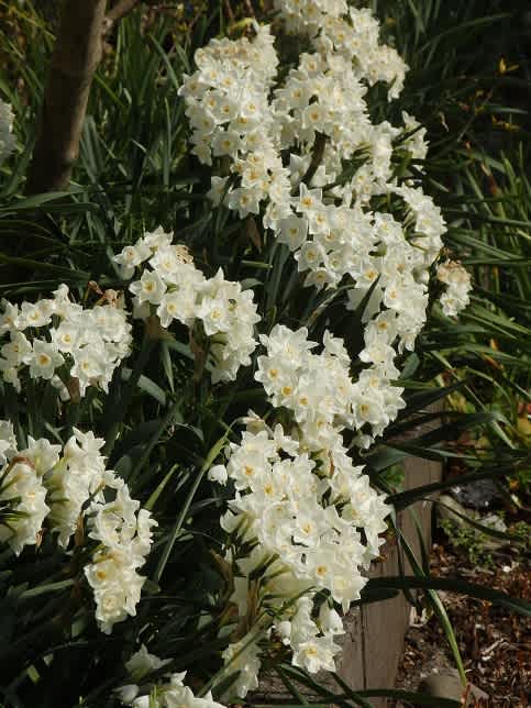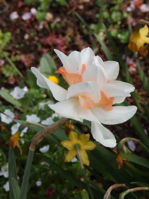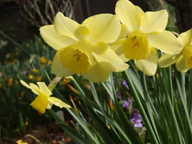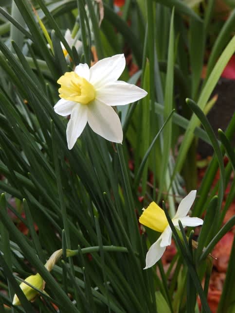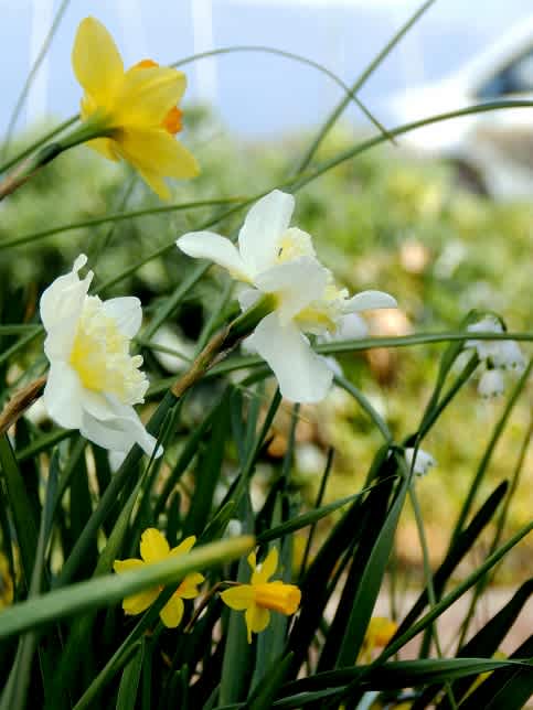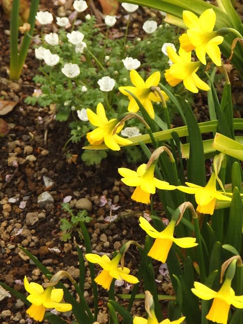 2015-03-21 スイセンたち 庭の花 庭の木・花 ■咲きそろう~■ 昨日は暖かで青空も広がる日でした。予定があるのでおでかけなしで庭をみてまわりました。12日に撮影した分と20日撮影の分とまとめてスイセンをUPします。野に出て自生地の花何種類もうつしていますがすみません。後回しです。 11月末から咲くガリール遅くに咲く口紅スイセンまで4月初旬まで楽しめます。 ユスラウメの花・・青空に美しい。その下にもスイセンは沢山です