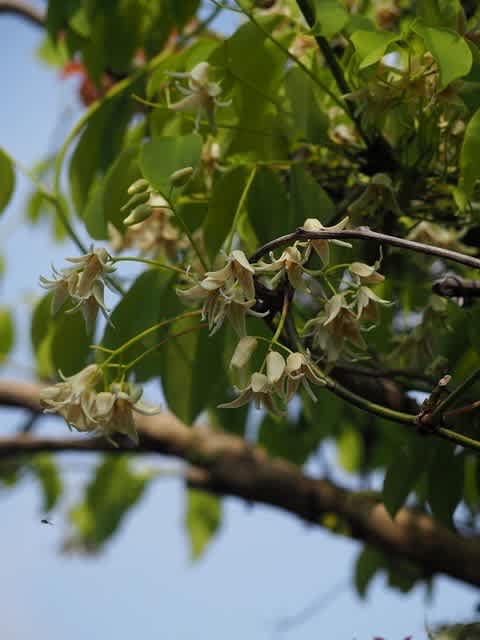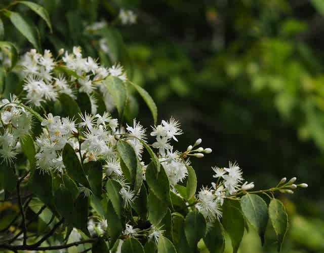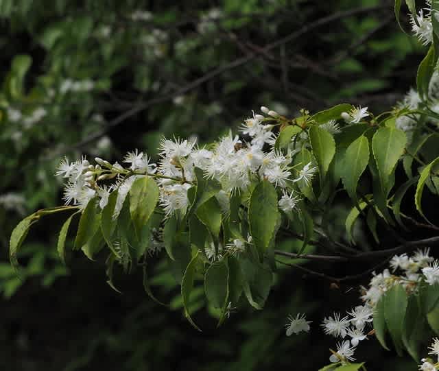 登山道を歩いていると地面が白くなっている。上をみるとこの花が満開。