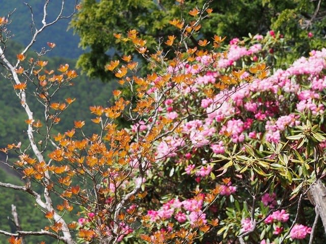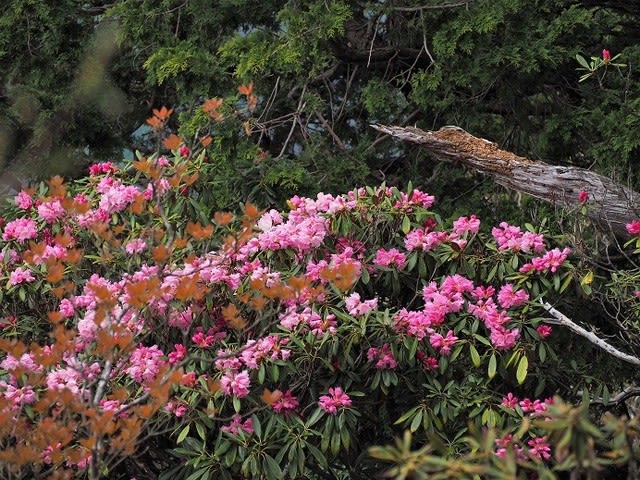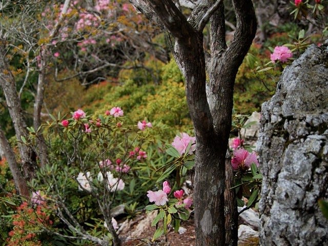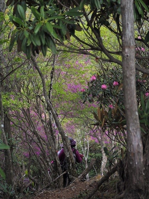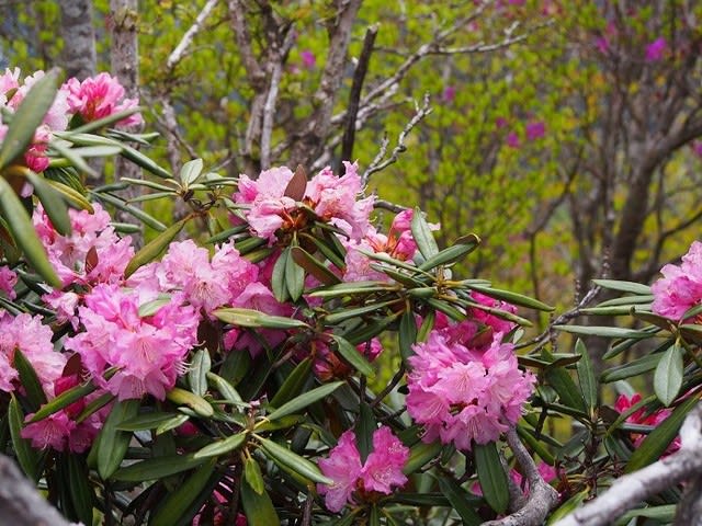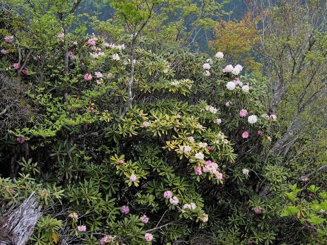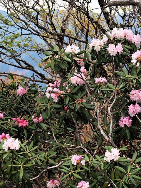 昨日の登山の目的のひとつシャクナゲ・・咲いていました。石灰の岩場・細尾根などで「よくもまあ!こんな場所に~」と思えるところで根を張り花をつけていました。昨年見た大爆発シャクナゲの場所とは全く違います。
