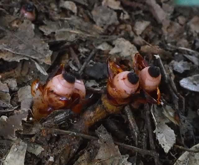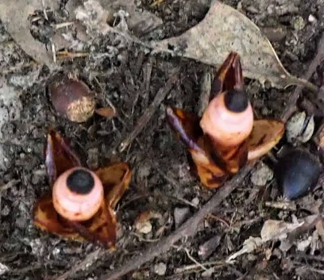 ヤッコソウは最終盤となっていて可愛い様はみられません。でも、すぐ横ににはシイの実が落ちていて大きさの比較ができますよ。シイの実は炒って食べると美味しい。まだ綺麗に実が入っていたので皆で採り、食しました。