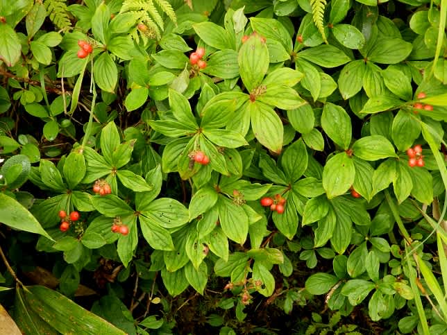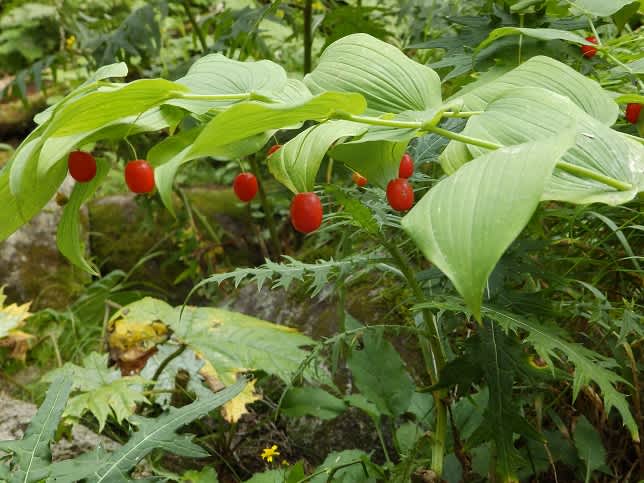 今回歩いていて一番目立ったのがこの葉・と赤い実。登山道脇にずっとありました。四国では非常に少ないのですが本州中央部の山には多いのですよね。