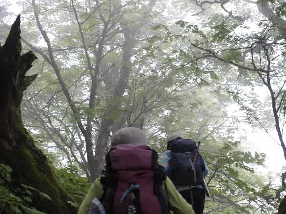 山の天気はすぐに変わり12時半には周囲がガスって見えなくなり、幽玄の世界に迷い込んだかのよう。