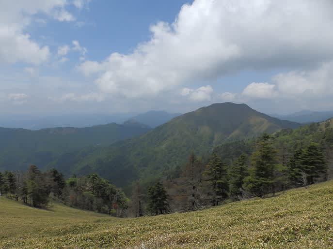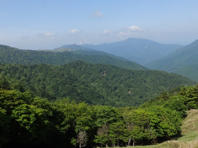 剣山頂上から一ノ森への道は5月に登った山並みが見られます。次郎笈の後ろに石立山