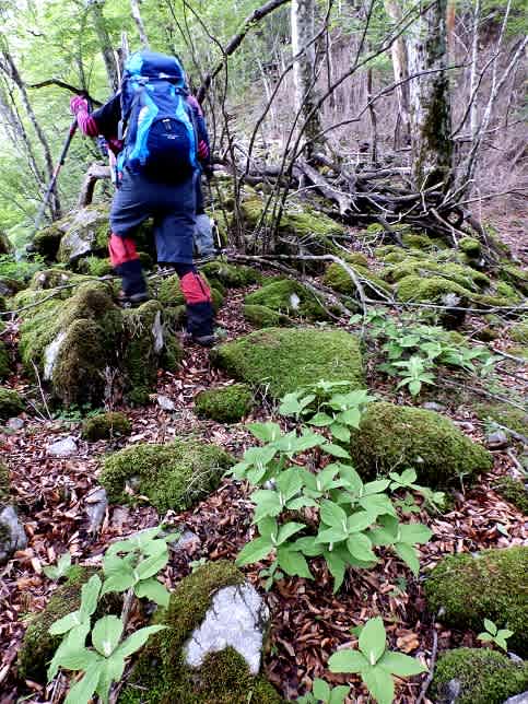こんなところです。なのでかなり厳しい登りとなります。岩場を過ぎるとほっとし、腐葉分ある「土」の有難味を感じます。