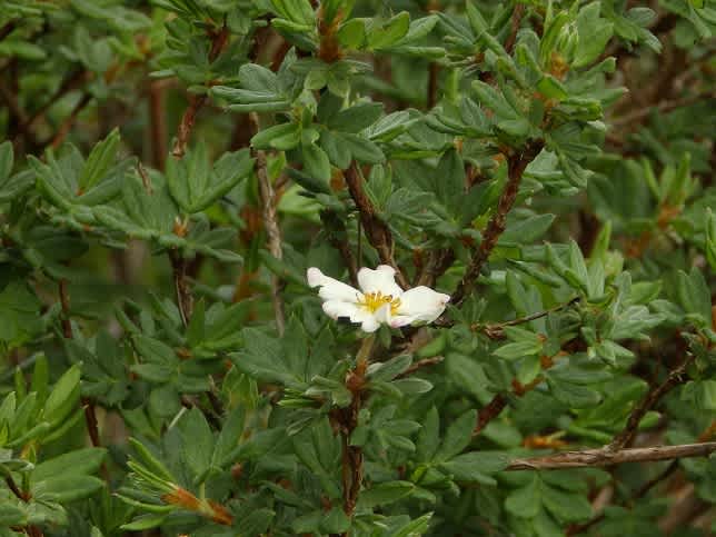 ハクロバイ(バラ科・キジムシロ属)高知県内ではここのみに生育。一度はみておきたかった。一輪のみの開花です