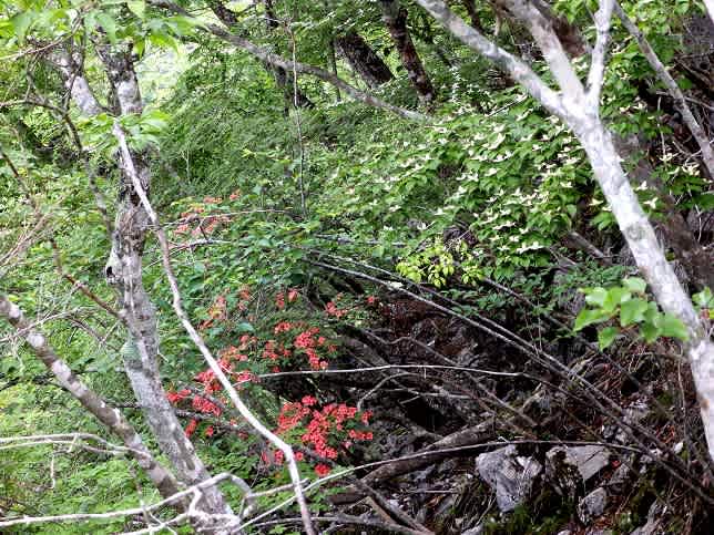 岩場に多く生育するシロヤシオ・ゴヨウツツジは花時期をおえているのですがもしかして咲いていないかと探しますと