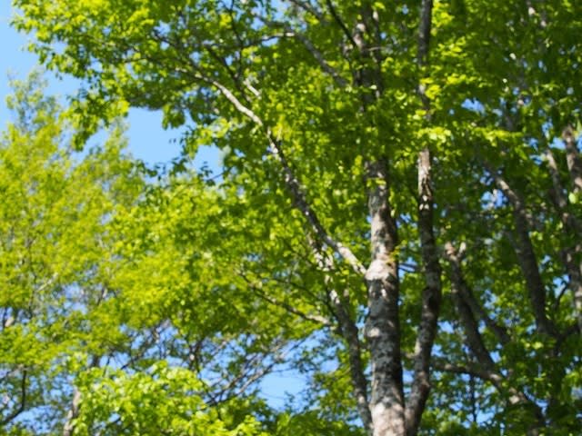 青空のなか新緑に包まれ大きな木の中・開けた尾根などを歩いてリフレッシュできたのです。