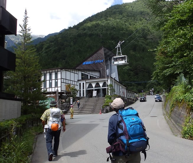 車を停めて10分ほどあるいて新穂高ロープウェイ乗り場へむかう。