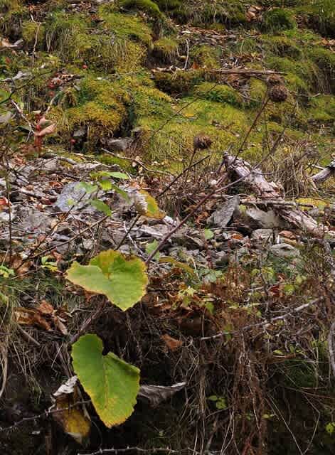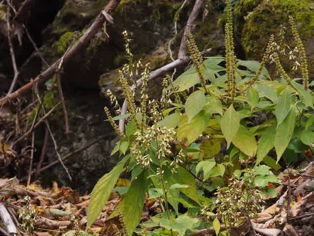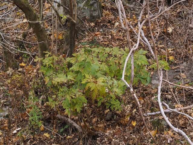 林道脇では鹿の食害がひどくて残っている草花は少ないのです。鹿が食べないこれはずらりと並んでいます。花時だと見事でしょうね