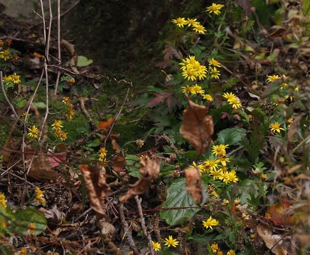 辛うじて黄色花が画像拡大によりみられました。鹿が入り込めないような岩場の急斜面で撮影