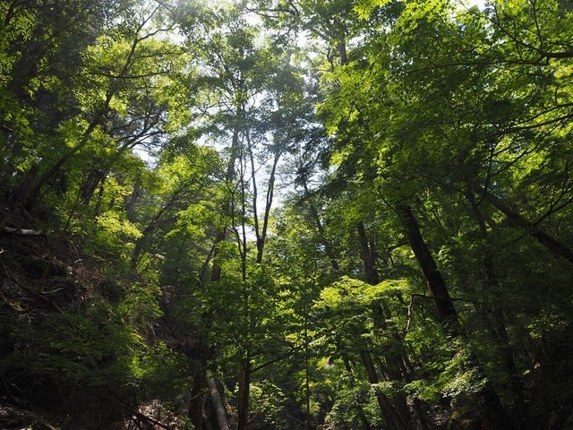 目を上に転じると心地よい緑輝くのです。