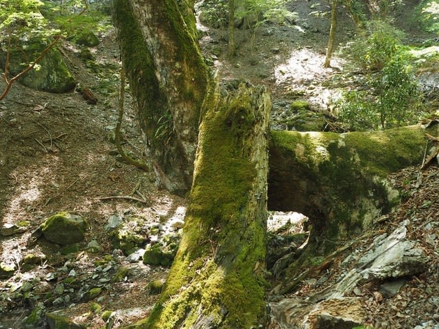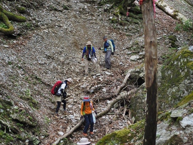 鹿の食害で笹がまったくなくなり保水力低下し、谷は崩れています。そんな場所を上り下りするのだから足には思いのほか余分な力がかかります。