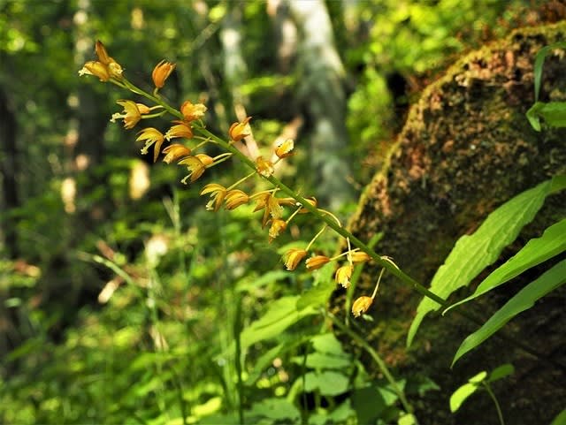 今旬の花だったので全部で10株ほど見られました。このランは小さいのと葉が地面に寝たようなので食べられにくいのでしょう。
