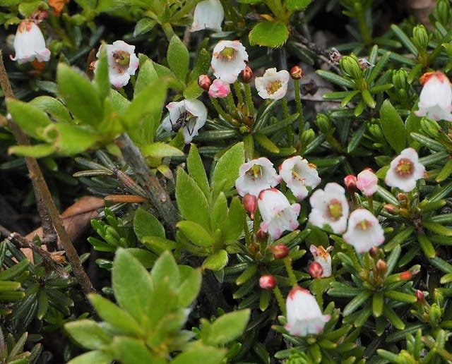 西赤石山はアケボノツツジとアカモノが有名です。そしてツガザクラも有名。アカモノが満開だったということはツガザクラは終盤だということ・・なので標高の低い場所では綺麗ではありませんでした。でも、頂上付近では可愛く咲いて迎えてくれたのです。