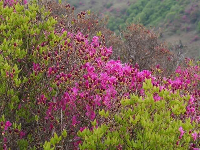 5月中旬に満開を迎える愛媛のツツジの名所笠取山・大川嶺はとっても手軽に行くことができる山です。日曜日には車でいっぱいになると考え昨日でかけました。朝、一番の到着だったので人にさほどあわず見事に咲いたツルギミツバツツジを手軽に楽しむことができました。ここは登らずとも車の中からでも十分に愛でることができます。なので多くの人が訪問し、渋滞することすらあります。