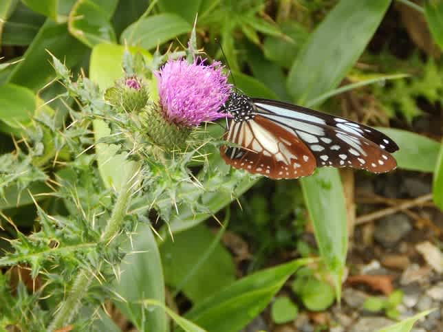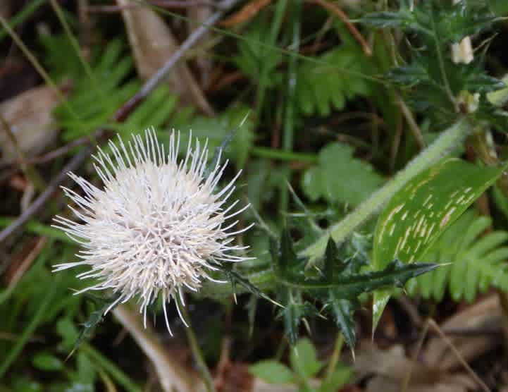 鹿が食べない植物が元気なのでアザミは目立ちます。歩いていてトゲが当たるのできがつくこと多い。白花も4株みつけました。ノアザミの変種であるトゲアザミはここ剣に多いのだそうです。