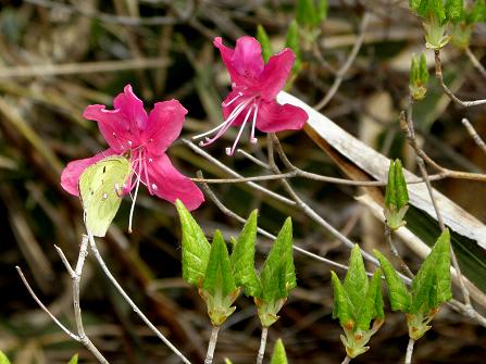 ミツバツツツジはあまり咲いていなかったのですが蝶が止まっていたので撮影。