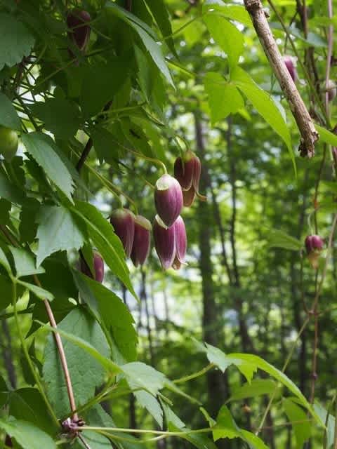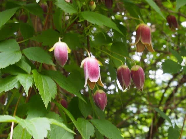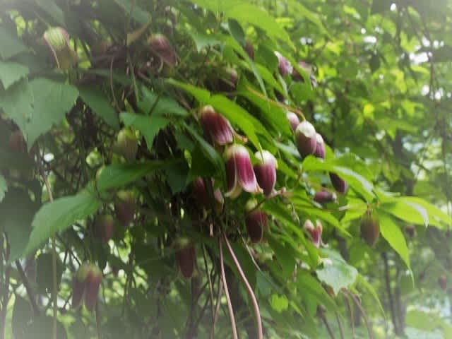 初夏に咲くハンショウヅルですが今回見たのは見事な花着き・開花状態。遠目でもわかる花数でした。