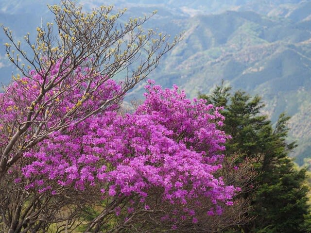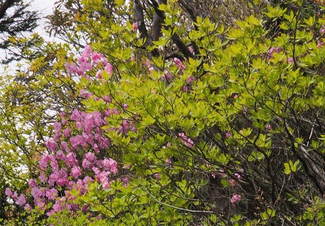 シャクナゲをみての帰りの尾根に咲くミツバツツジ