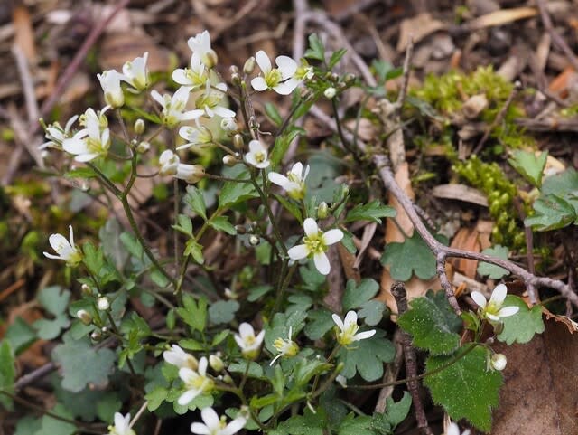 鹿が食べないのだと思います。林床はこのような裸地なのですが、マルバコンロンソウのみ開花