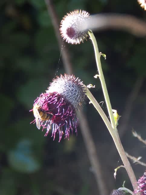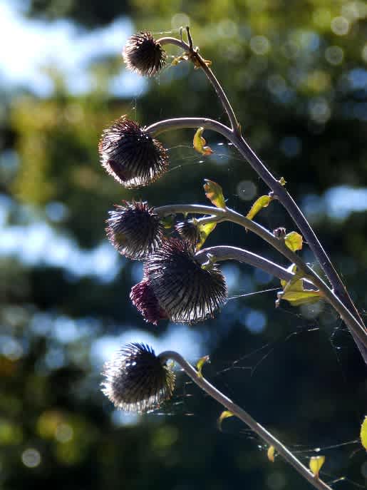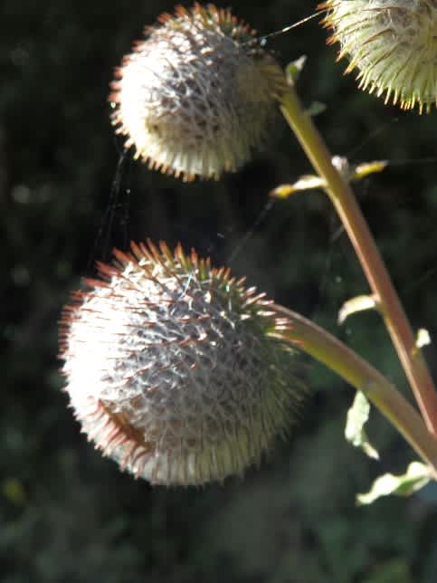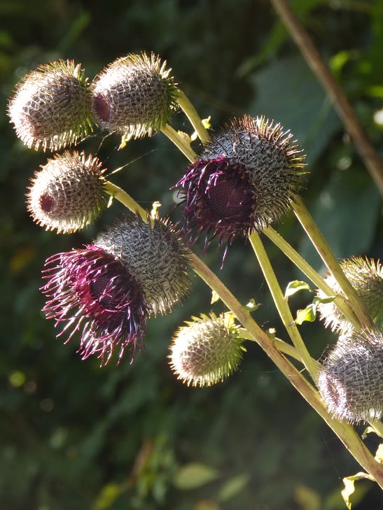 午後になっても標高1000m超した山なのに晴れて居てさほど風もないのです。シックな色の花・蕾の綿毛とともにじっくりみられました。