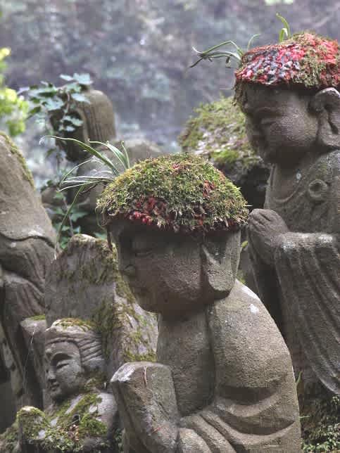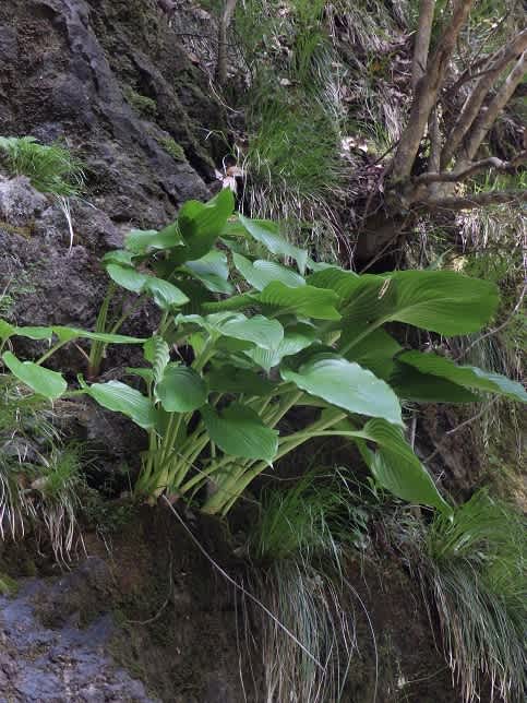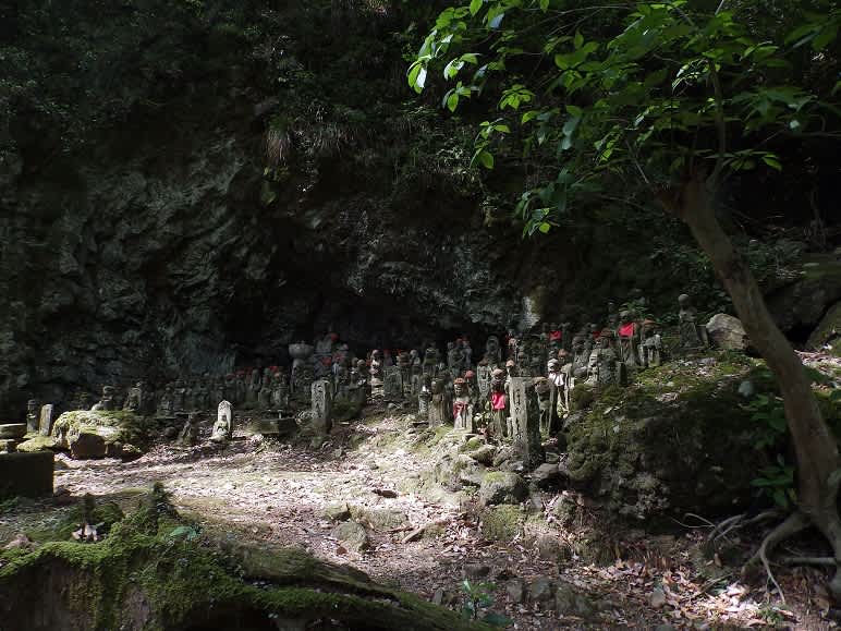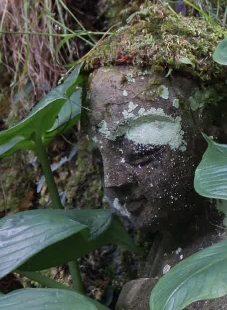 巨岩そそり立つこの渓谷にはお地蔵さん・五百羅漢など祀られておりました。その脇になぜかムサシアブミが寄り添うように多く見られ「高知で多い植物なのに!ま~」と驚いたのです。